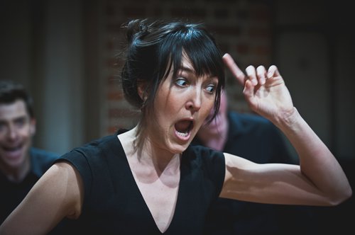 King Lear by Shakespeare in various ways, such as a cappella singing and dramatic dance. Labeled as a "non-linear" production, the performance presents the different emotional stages of the characters.