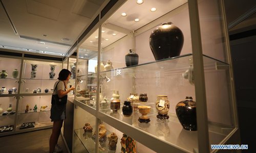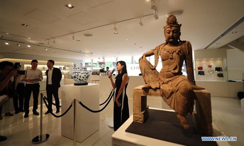 Artworks for auction are displayed during a media preview of the Christie's Hong Kong autumn auction 2019 in Hong Kong, south China, Oct. 3. 2019. The Christie's Hong Kong autumn auction 2019 will be held from Nov. 22 to 27. (Xinhua/Lu Ye)