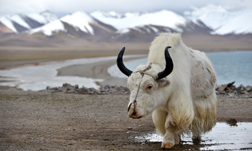 A yak walks along the bank of Nam Co Lake in southwest China's Tibet Autonomous Region, Oct. 5, 2019. (Xinhua/Chogo)
