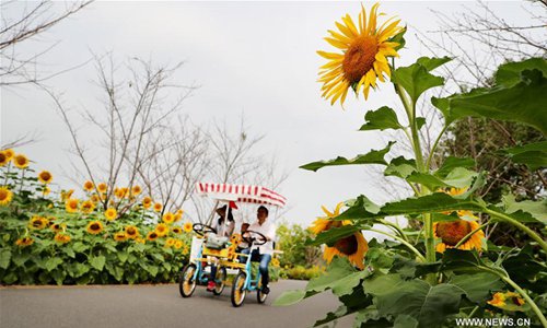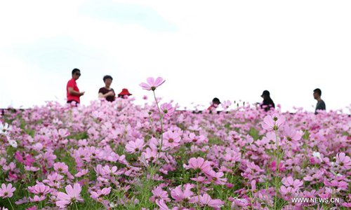 Tourists go sightseeing at an ecological park in Jinshan District, east China's Shanghai, Oct. 7, 2019. (Xinhua/Fang Zhe)