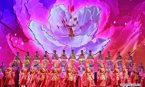 Artists perform at the closing ceremony of the 2nd Art Festival of Shanxi in Taiyuan, capital city of north China's Shanxi Province, Oct. 8, 2019. (Xinhua/Yang Chenguang)