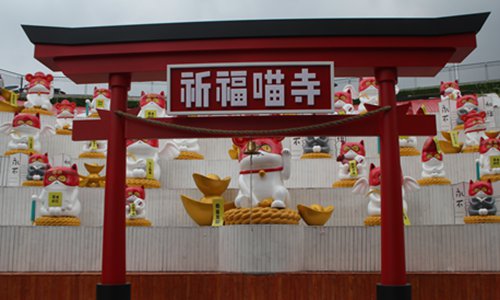 A special temple is built in Southwest China's Chongqing Municipality, which has 30 sculptures of cartoon cats. Each cat represents a blessing, such as being able to find a lover quickly. Photo: IC