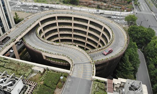 A spiral ramp of a parking lot attached to a shopping mall in Hangzhou, East China's Zhejiang Province, requires drivers to descend six stories before parking. Photo: VCG