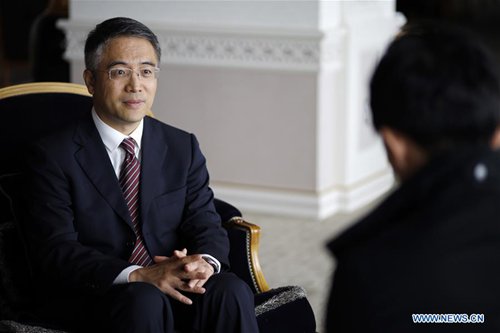 Gu Shu, president of the Industrial and Commercial Bank of China (ICBC), speaks to Xinhua during an interview at the UN headquarters in New York, on Oct. 16, 2019. The UN announced Wednesday that 30 global business leaders, including the Industrial and Commercial Bank of China (ICBC), will work together over the next two years to free up trillions of dollars to finance the Sustainable Development Goals (SDGs). (Xinhua/Li Muzi)