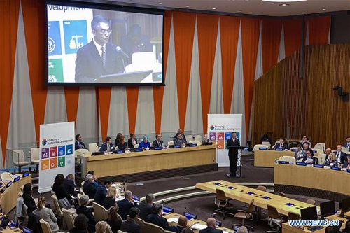 Gu Shu, president of the Industrial and Commercial Bank of China (ICBC), speaks during the launch of the Global Investors for Sustainable Development (GISD) Alliance at the UN headquarters in New York, on Oct. 16, 2019. The UN announced Wednesday that 30 global business leaders, including the Industrial and Commercial Bank of China (ICBC), will work together over the next two years to free up trillions of dollars to finance the Sustainable Development Goals (SDGs). (Xinhua/Li Muzi)
