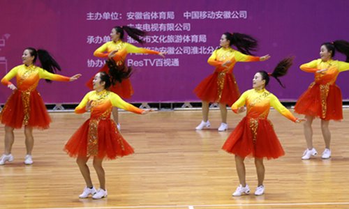 A square dance competition in Huaibei, East China's Anhui Province on Wednesday features mainly middle-aged women. The top three prizes are worth a total of 180,000 yuan ($25,380). Photo: VCG