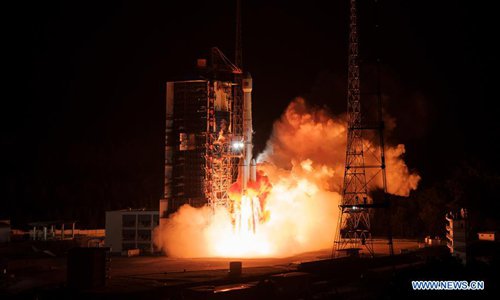 A new communication technology experiment satellite is launched by a Long March-3B carrier rocket at the Xichang Satellite Launch Center in Xichang, southwest China's Sichuan Province, Oct. 17, 2019. The satellite will be mainly used for multi-band and high-speed communication technology experiments. (Photo by Guo Wenbin/Xinhua)