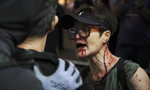As the unrest in Hong Kong entered the fifth month, rioters who glorified themselves as "freedom and democracy fighters" brutally assaulted people who hold different opinions with them, either in streets, on trains or at shopping malls, the exact opposite of what they claimed to pursue.