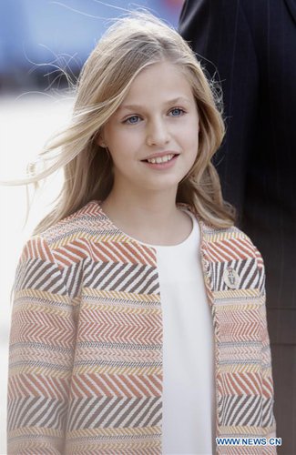 Spain's Princess Leonor attends the ceremony to present the Princess of Asturias Awards in Oviedo, Spain, Oct. 18, 2019. The annual ceremony to present the Princess of Asturias Awards was held Friday in the northern Spainish city of Oviedo, during which the 13-year-old Spanish princess delivered her debut speech. "Today is a very important day in my life and one I have waited for with a lot of expectation," said Spain's Princess Leonor at the ceremony where her namesake awards were presented to individuals, entities or organizations worldwide who make notable achievements in sciences, humanities and public affairs. Leonor, who is the heir to the Spanish throne, presided over the ceremony alongside her father, King Felipe VI of Spain, at the Campoamor Theatre in Oviedo. (Princess of Asturias Foundation/Handout via Xinhua)