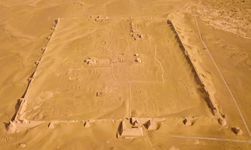 Aerial photo taken on Oct. 18, 2019 shows a view of Heicheng relic site in Ejina Banner, north China's Inner Mongolia Autonomous Region. (Xinhua/Peng Yuan)