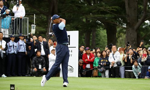 Tiger Woods hits a tee shot on Monday in Inzai, Chiba, Japan. Photo: VCG