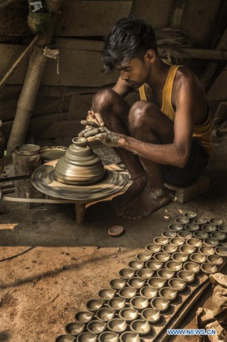 An Indian potter makes earthen lamps for Diwali, the Hindu festival of lights, in Kolkata, India, Oct. 21, 2019. Diwali is the Hindu festival of lights which is celebrated all over the country. (Xinhua/Tumpa Mondal)