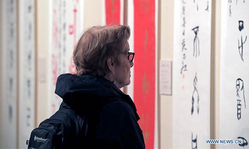 A visitor views oracle bone inscription exhibits during an exhibition held at National Museum of Chinese Writing in Anyang, central China's Henan Province, Oct. 18, 2019. Photo:Xinhua
