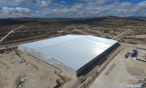 Aerial photo taken on June 19, 2018 shows the Large High Altitude Air Shower Observatory (LHAASO) under construction in Daocheng County, southwest China's Sichuan Province. An observatory for detecting cosmic rays is being built in Sichuan Province. The project, known as the LHAASO, is located in mountains of the eastern part of Qinghai-Tibet Plateau at an average altitude of 4,410 meters.Photo:Xinhua