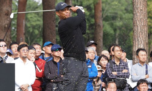 Tiger Woods tees off at the second hole during the first round of the Zozo Championship golf tournament in Inzai, Japan on Thursday. Photo: AFP