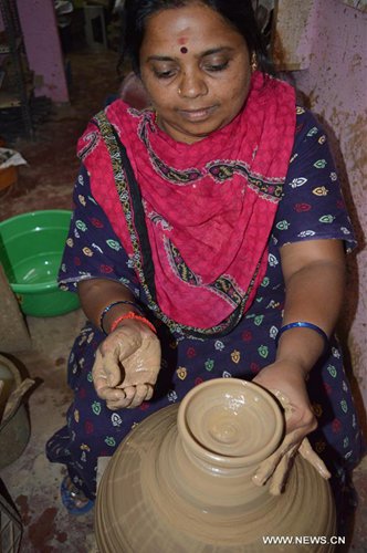 An Indian potter makes an earthen lamp for Diwali, the Hindu festival of lights, in Bangalore, India, Oct. 24, 2019. Diwali is the Hindu festival of lights which is celebrated all over the country. (Xinhua/Stringer)
