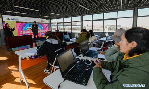 An e-commerce training course for poverty alleviation is held in Lhasa, capital of southwest China's Tibet Autonomous Region.(Xinhua/Liu Dongjun)