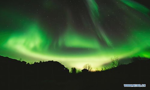 Photo taken on Oct. 26, 2019 shows the aurora borealis, or Northern Lights, near the city of Tromso in northern Norway. (Xinhua/Zhang Cheng)