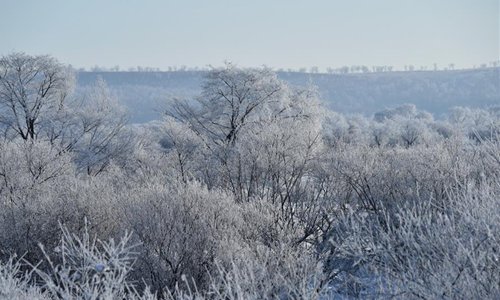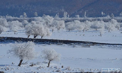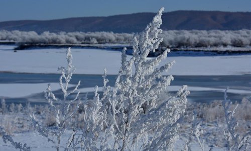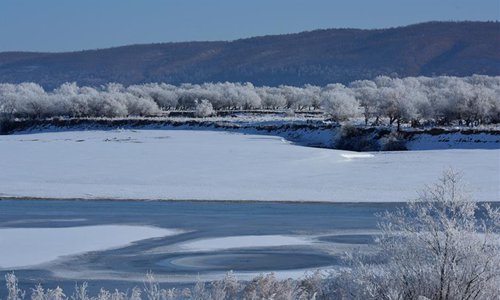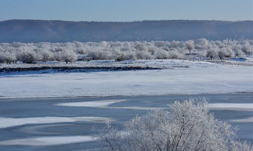 Photo taken on Oct. 30, 2019 shows the rime scenery at the Huma section of the Heilongjiang River in northeast China's Heilongjiang Province. (Photo by Zhou Changping/Xinhua)