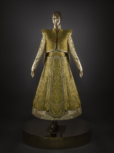 This exquisite piece of couture design was meticulously crafted over the course of five years and is hand sewn with gold thread in-laid with the precious metal. Carrying an estimate of $620,000-870,000, the 'Gold Traditional Bridal Dress' comes to auction direct from Guo's atelier in Beijing, presenting a rare opportunity to acquire a piece from one of the designer's significant couture collections, normally only available for purchase when commissioned.