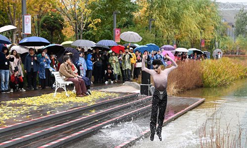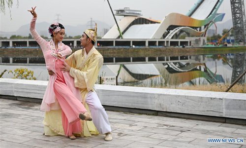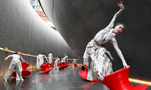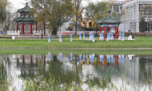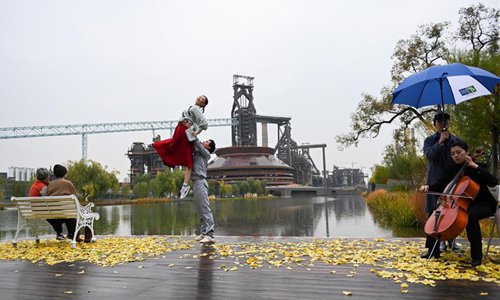 Dancers perform during a dance show at the Shougang Park in Beijing, capital of China, Nov. 2, 2019. A two-day dance show is held at the Shougang Park, a former steel plant, in Beijing. Photo: Xinhua
