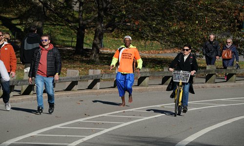 French barefoot runner Sidy Diallo trains in Central Park, New York on Friday. Photo: AFP