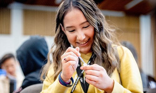 Katelyn Gutierrez, 15, a sophomore at Carter High School, uses a dropper to transfer soda water during a science interactive activity while attending STEM apalooza Student Conference at San Bernardino Valley College in California on November 1, 2019. Photo: IC