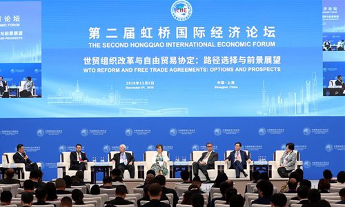 Parallel session "WTO Reform and Free Trade Agreements" of the second Hongqiao International Economic Forum is held in Shanghai, east China, Nov. 5, 2019. (Xinhua/Liu Ying)