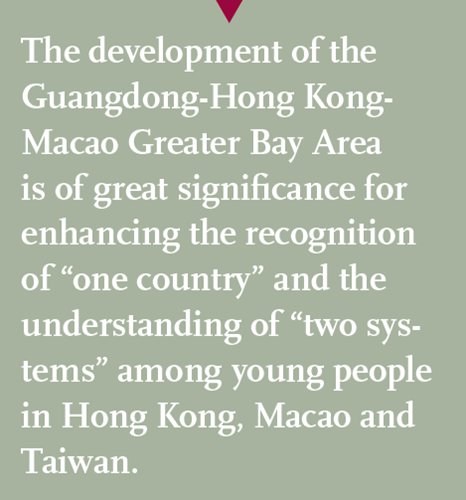 He added that the GBA's development is of great significance for enhancing the recognition of "one country" and the understanding of "two systems" among young people in Hong Kong, Macao and Taiwan.