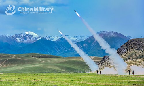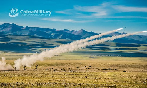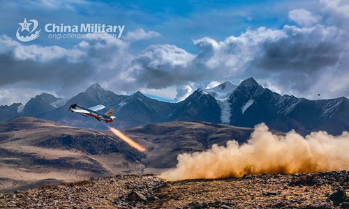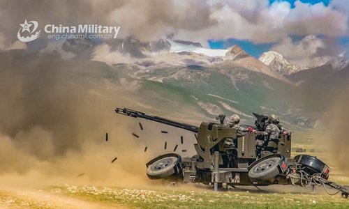 Artillerymen assigned to an air-defense brigade under the PLA Xizang Military Command fire a towed howitzer system at mock targets during a recent live-fire training operation at the altitude of 4,500 meters in southwestern China's Xizang Autonomous Region. The brigade conducts such training subjects as long-distance and round-the-clock real combat live-fire training operation, reconnaissance, electronic interference operation, and so on, in order to test troops’ air-defense capabilities. Photo: China Military