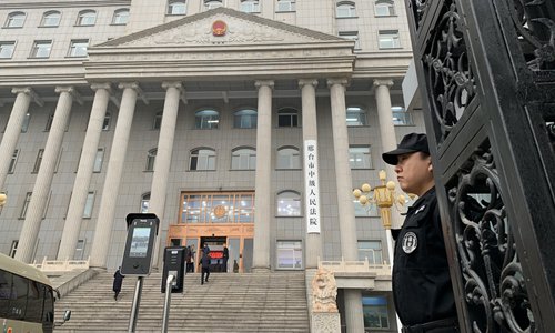 A security guard stands at the entrance to the Xingtai Intermediate People's Court in North China's Hebei Province on Thursday. Photo: Zhao Yusha/GT