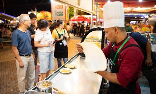 A chef of a food stall makes dishes during the 19th Macao Food Festival at Sai Van Lake Square in Macao, south China, Nov. 8, 2019. The 19th Macao Food Festival kicked off in Macao on Friday with about 160 food stalls to serve the visitors. (Xinhua/Cheong Kam Ka)