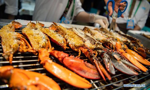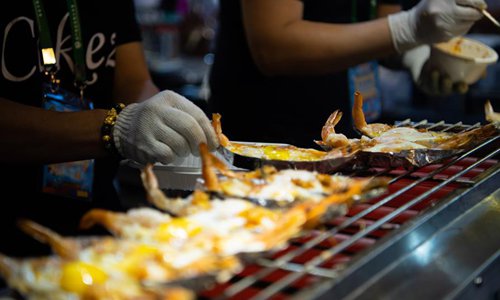 Chefs of a food stall make dishes during the 19th Macao Food Festival at Sai Van Lake Square in Macao, south China, Nov. 8, 2019. The 19th Macao Food Festival kicked off in Macao on Friday with about 160 food stalls to serve the visitors. (Xinhua/Cheong Kam Ka)