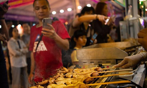 Visitors select food in the 19th Macao Food Festival at Sai Van Lake Square in Macao, south China, Nov. 8, 2019. The 19th Macao Food Festival kicked off in Macao on Friday with about 160 food stalls to serve the visitors. (Xinhua/Cheong Kam Ka)