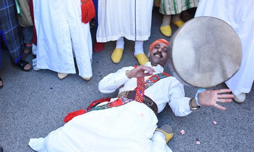 A performer celebrates the Islamic Prophet Muhammad's birthday in Sale, Morocco, on Nov. 9, 2019. (Photo by Chadi/Xinhua)