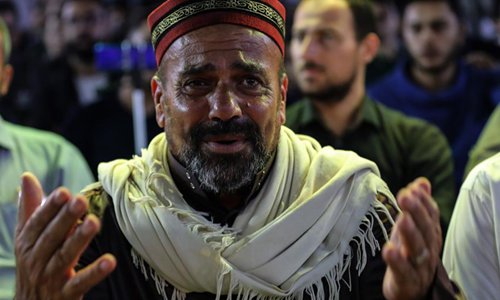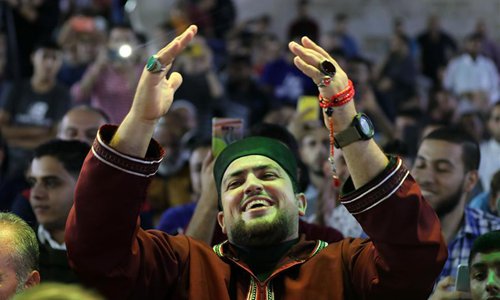 Palestinian Muslims sing during a ceremony to celebrate the Islamic Prophet Muhammad's birthday in Gaza City, on Nov. 9, 2019. (Photo by Yasser Qudih/Xinhua)