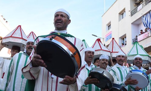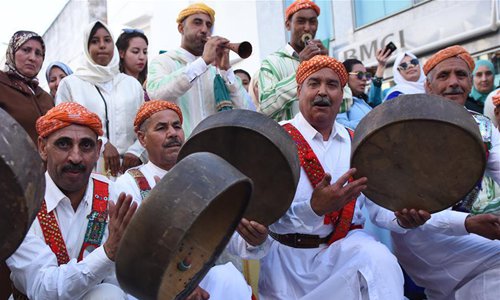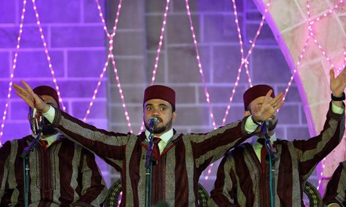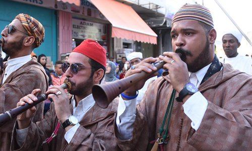 Performers celebrate the Islamic Prophet Muhammad's birthday in Sale, Morocco, on Nov. 9, 2019. (Photo by Chadi/Xinhua)