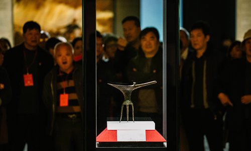 Visitors look at the Bronze Jue Vessel with Nipples at the Erlitou Relic Museum in Central China's Henan Province on October 30. Photo: Li Hao/GT