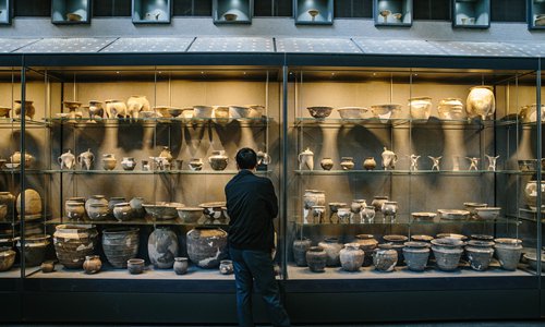 A visitor examines a pottery display in the museum on October 30. Photo: Li Hao/GT
