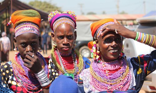 Local women in traditional costumes are seen during the Gaani Festival in Nikki, Benin, Nov. 9, 2019. The two-day festival features traditional tribal dances and equestrian shows. It is the most important festival of the Bariba people of Benin and is designed to celebrate victory and joy. (Photo by Seraphin Zounyekpe/Xinhua)