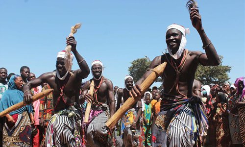 Local people dance during the Gaani Festival in Nikki, Benin, Nov. 9, 2019. The two-day festival features traditional tribal dances and equestrian shows. It is the most important festival of the Bariba people of Benin and is designed to celebrate victory and joy. (Photo by Seraphin Zounyekpe/Xinhua)
