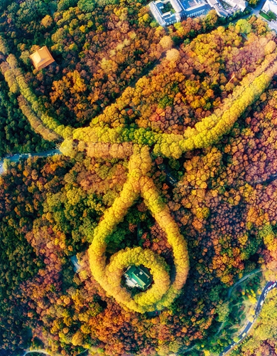 The green-glazed tiled rooftop of Soong May-ling Palace, located in Nanjing, East China's Jiangsu Province, looks like a pure gem pendant inlaid in the necklace made of numerous plane trees.