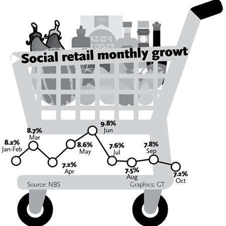 In the first 10 months of 2019, retail sales rose 8.1 percent to 33.48 trillion yuan ($4.77 trillion), while the index for services output value rose by 7 percent, according to data released by the National Bureau of Statistics (NBS) on Thursday.