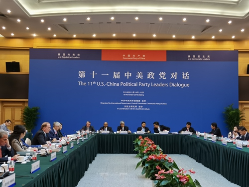 Current and former senior officials from China and the US met in Beijing on Monday for the 11th US-China Political Party Leaders Dialogue, where views on a wide range of issues, ranging from trade to security to internal politics, in both countries were shared, officials said.