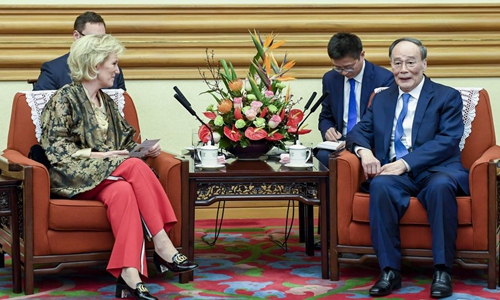 Chinese Vice President Wang Qishan met Monday with Princess Astrid of Belgium, who is leading an economy and trade delegation to visit China.