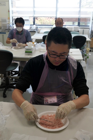 An employee prepares fish for radiation tests at Fukushima Agricultural Technology Center in Koriyama, Fukushima Prefecture, Japan on October 1. Photo: AFP