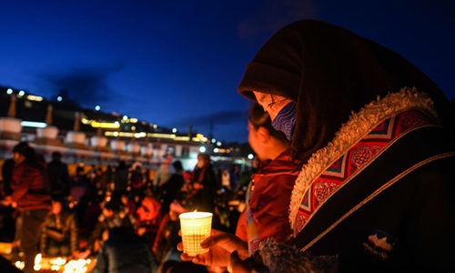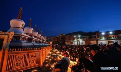 Believers light butter lamps at Taer Monastery in northwest China's Qinghai Province, Nov. 21, 2019. The Butter Lamp Festival celebrates the beginning of a new year on the Tibetan calendar and is an occasion to pray for happiness and good health by lighting butter lamps. This year's festival falls on Thursday. (Xinhua/Wu Gang)