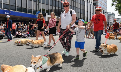 People participate in the annual Christmas parade with pets in Wellington, New Zealand, Nov. 23, 2019. (Xinhua/Guo Lei)