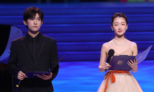 TFBoys member, Jackson Yee and Chinese actress Zhou Dongyu on stage at China's Golden Rooster and Hundred Flowers Film Festival's opening ceremony in Xiamen, East China's Fujian Province, on Tuesday. Photo: IC