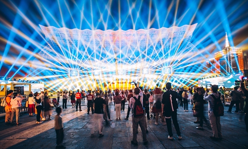 An outdoor light display attracts visitors at the Guangzhou International Lighting Exhibition 2019 in South China's Guangdong Province which runs from November 18 to Wednesday. Photo: VCG